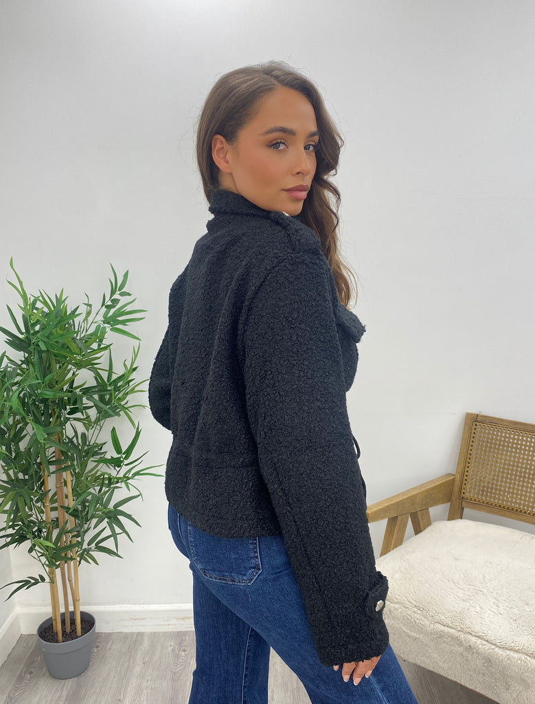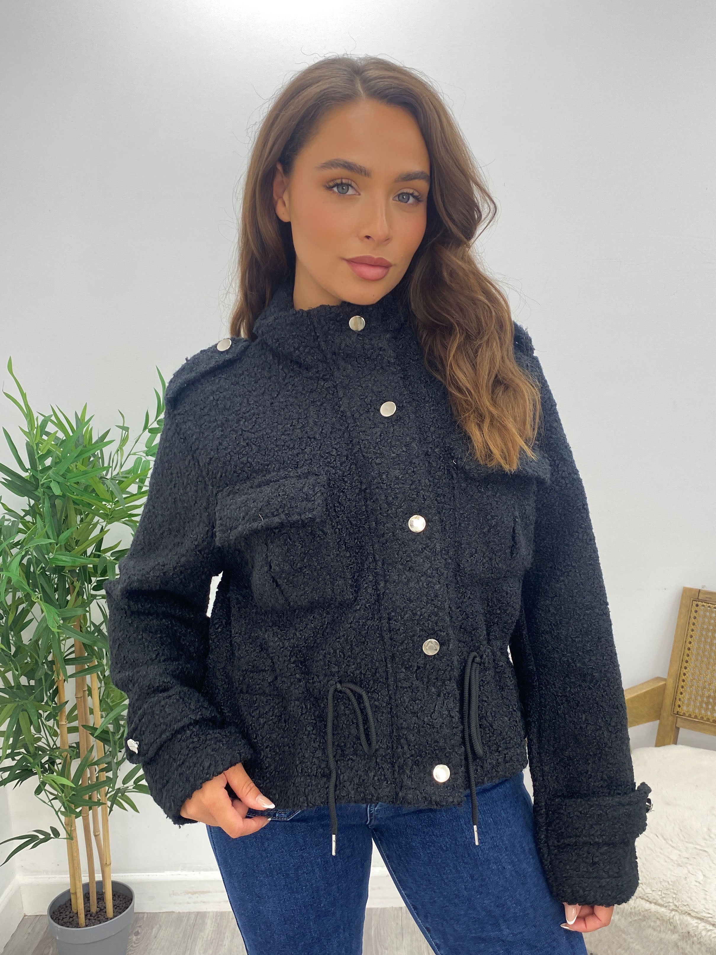 Stay cosy and on-trend with our teddy borg zip up jacket. Featuring a soft teddy borg texture, front zip fastening, and adjustable drawstring waist for the perfect fit, this jacket blends comfort with street-style appeal. Finished with flap chest pockets and a cropped cut, it’s a must-have layering piece for AW collections.