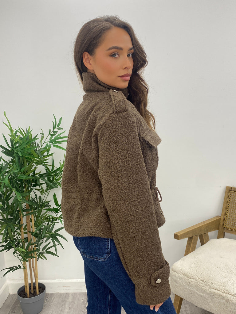 Brown Teddy Borg Zip Up Drawstring Jacket