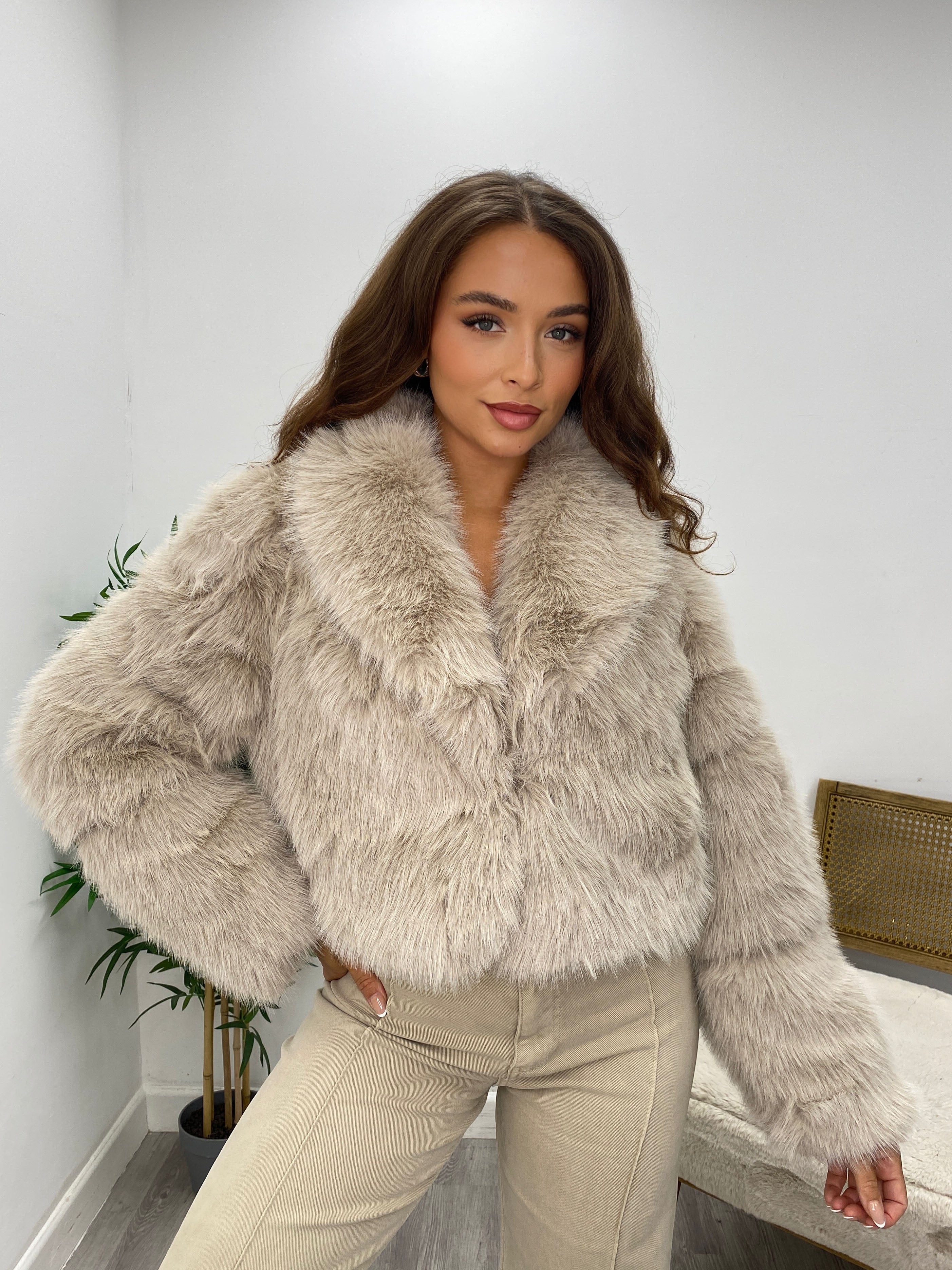 Beige Faux Fur Short Lapel Jacket - S/M M/L L/XL / 1 1 1 is backordered and will ship as soon as it is back in stock.