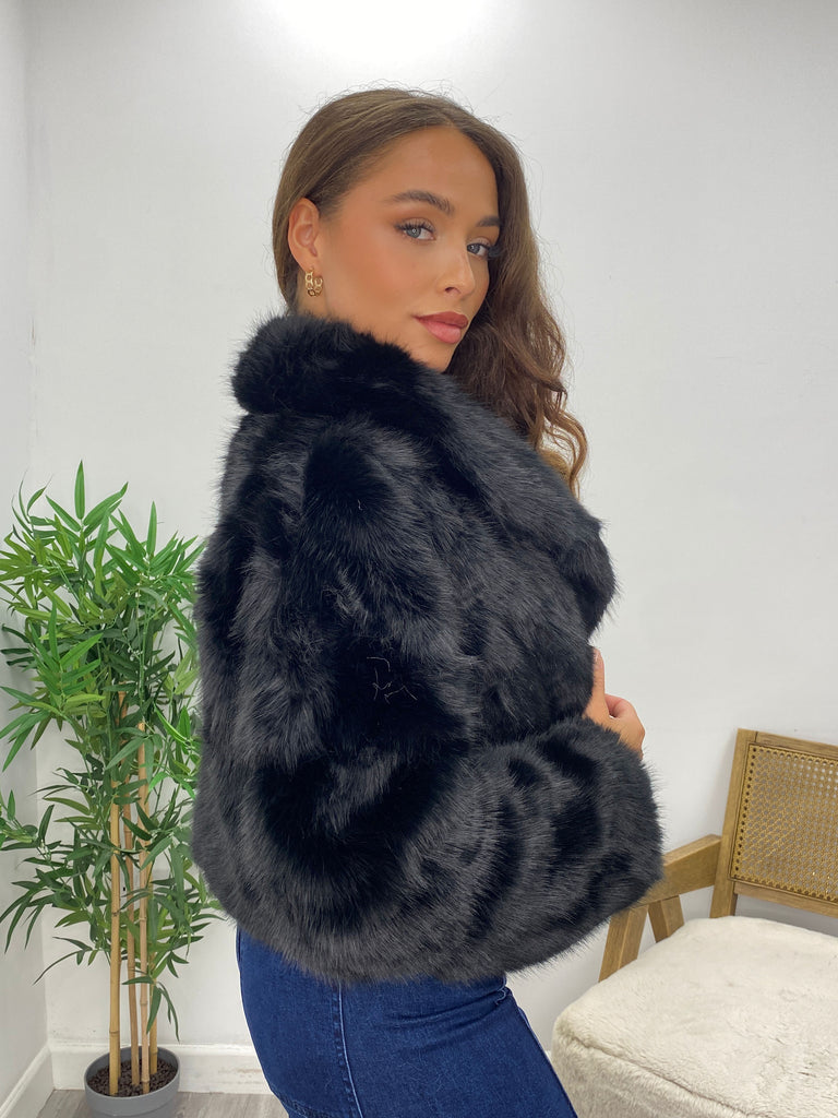 Black Faux Fur Short Lapel Jacket