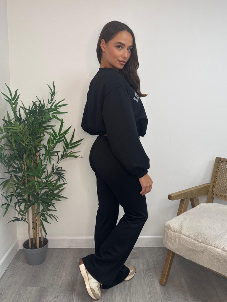 Black Los Angeles 1983 Elasticated Hem Sweatshirt & Flared Bottom Lounge Set