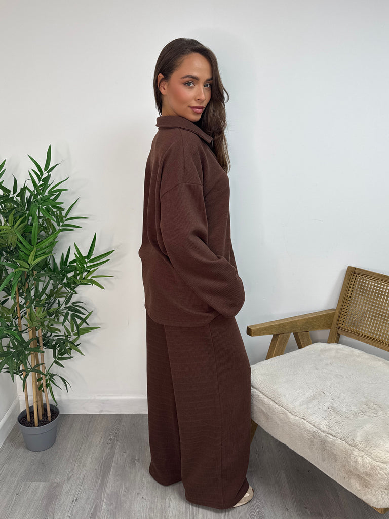 Keep it effortlessly cool in this textured zip lounge set. This relaxed co-ord features an oversized long-sleeve top with a half-zip collar and wide-leg trousers for that laid-back, luxe vibe. The subtle ribbed texture gives it a premium edge while staying ultra-comfortable, perfect for everyday wear or off-duty styling. Whether it’s airport days, coffee runs or chilled weekends, this set delivers the clean-girl aesthetic with zero effort.