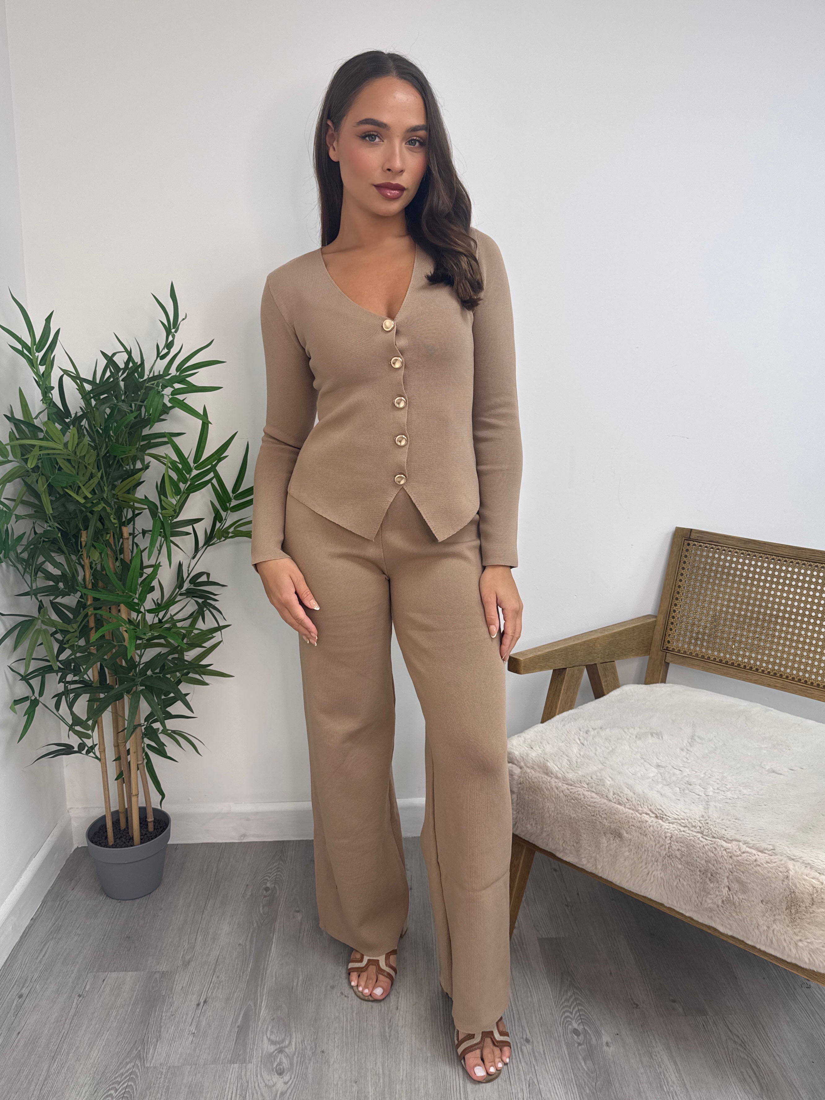 Crafted from a soft stretch fabric, this co-ord offers a flattering silhouette that your customers will love. Style it with heels for an elevated look or keep it casual with flats. A must-have neutral set for your A/W wholesale collection.