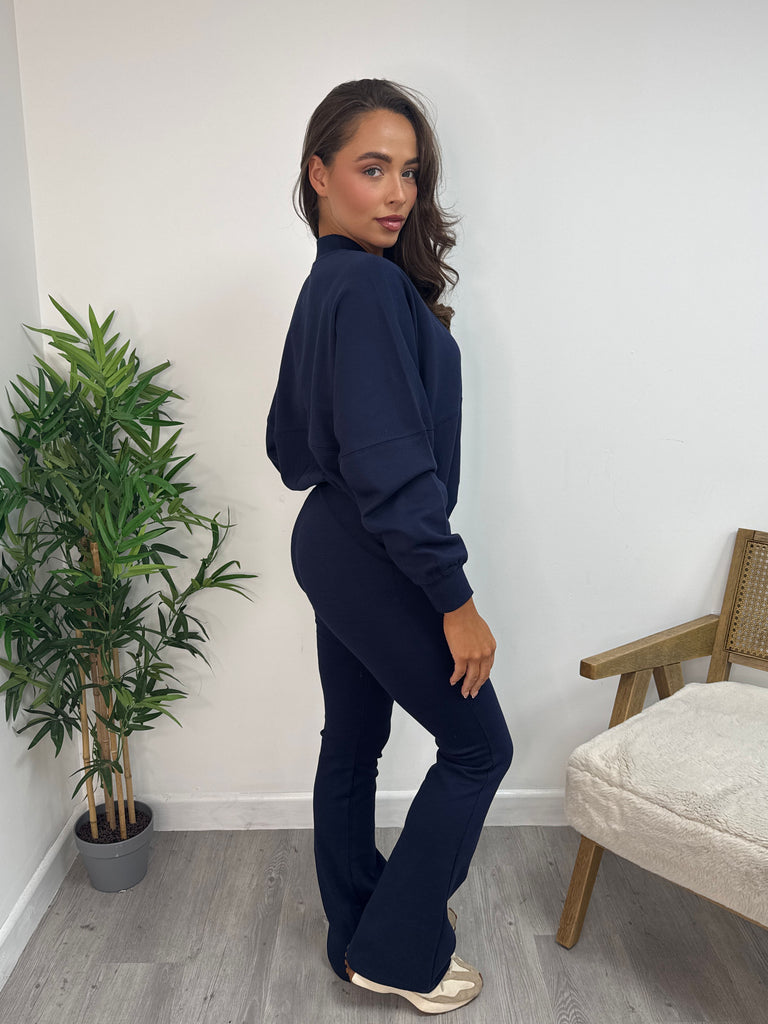 Navy Interlock Oversized Bomber Lounge Set with Flared Bottoms