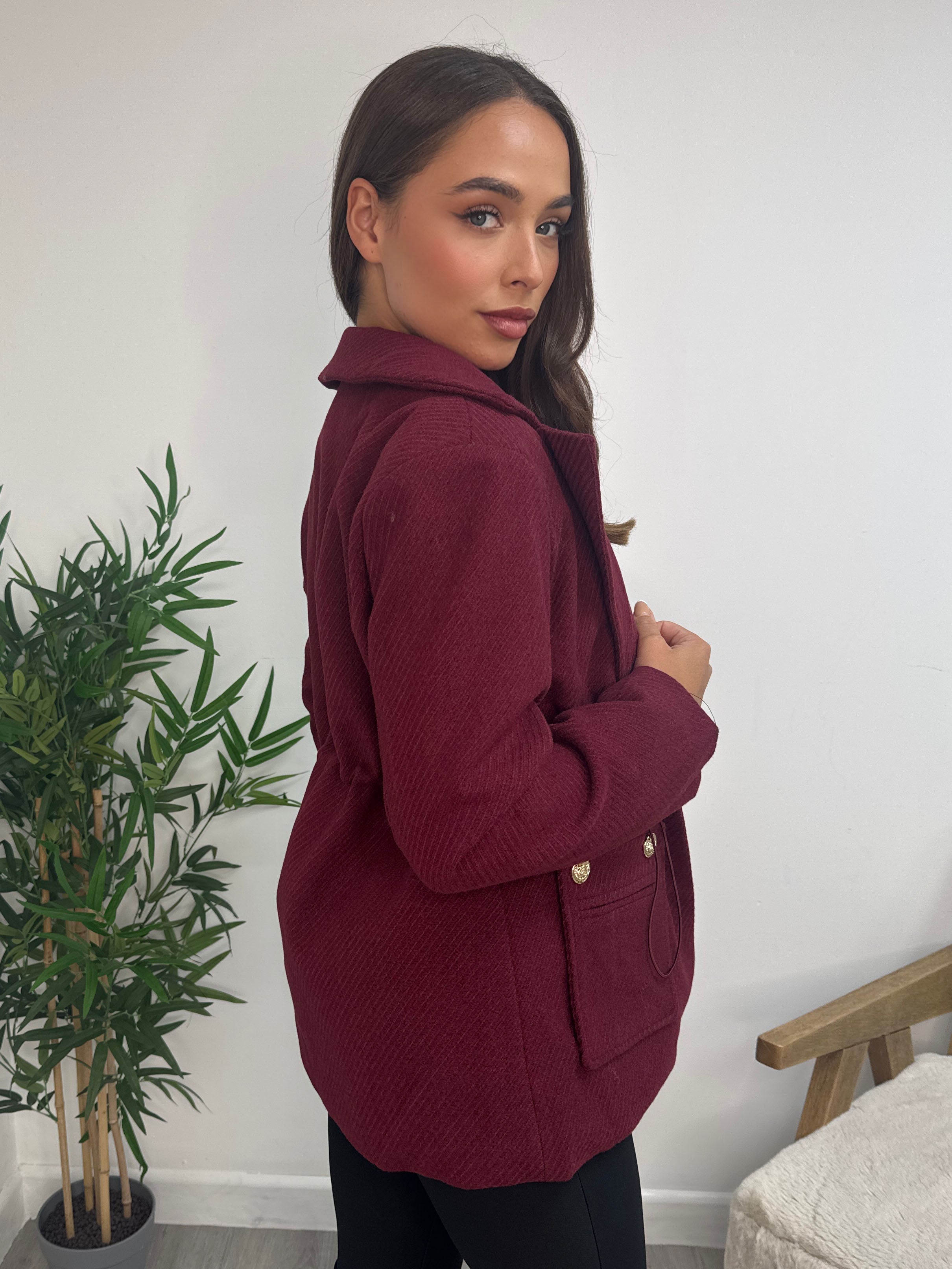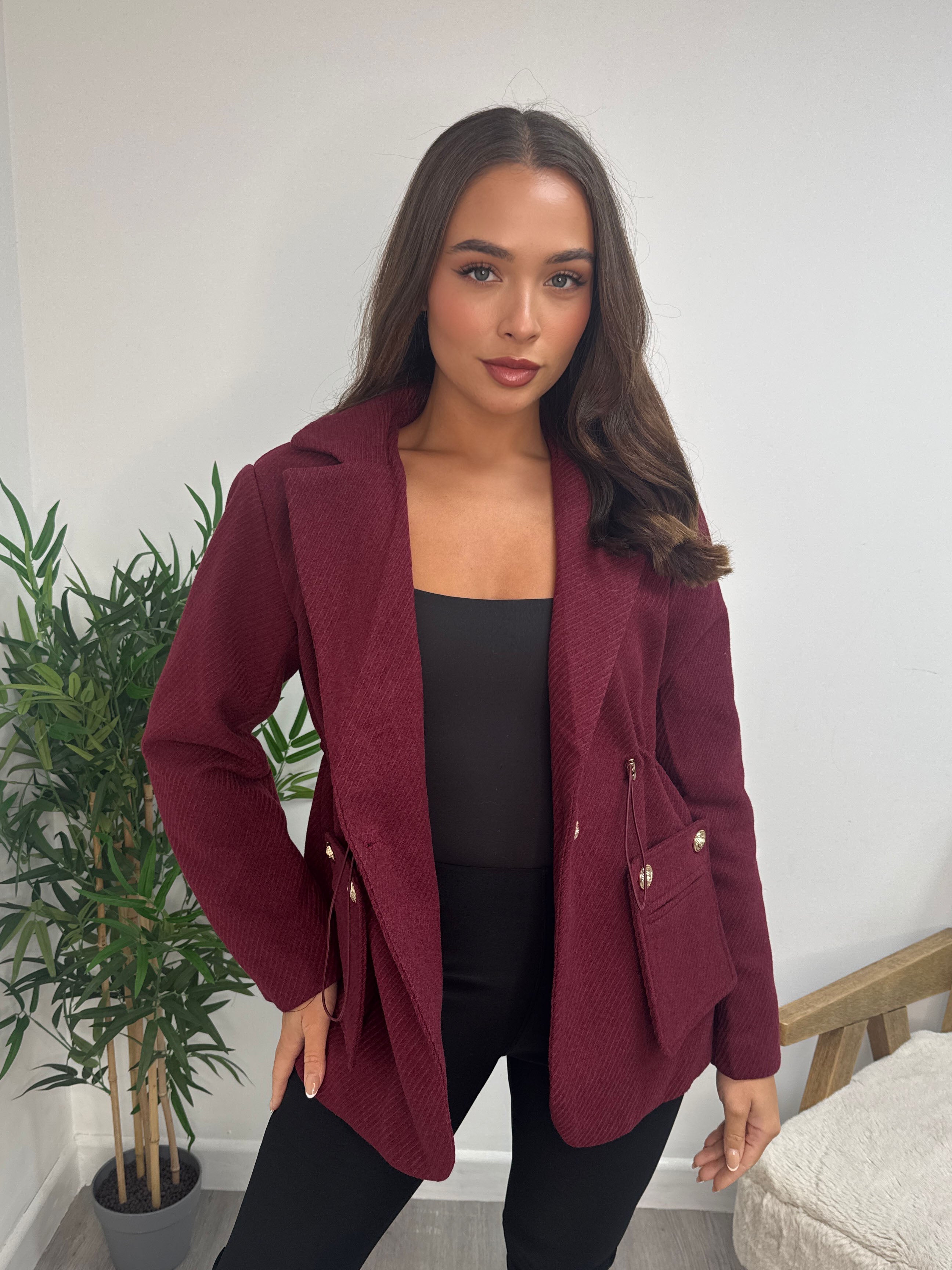 Wine Drawstring Waist Blazer with Front Pocket Detail